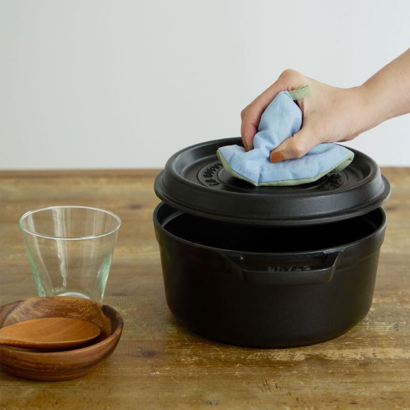 大きいミトンは持つ物によっては大き過ぎたり、保管にも場所をとりますが、手のひらサイズのミニミトンは、お鍋やスキレット、レンジで熱くなったお皿をつかむのにちょうど良い大きさです。