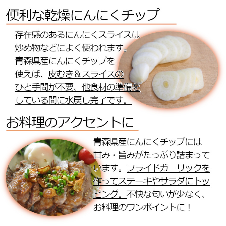 ※青森県産にんにくチップは、油で揚げている「フライドガーリック」ではありません。